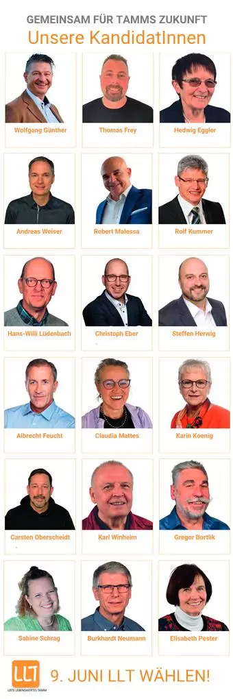 Die Gemeinderatswahl unserer Stadt Tamm rückt mit großen Schritten näher! Unabhängig von bundes- oder landespolitischen Parteivorgaben oder auch Parteizwängen arbeitet die Liste Lebenswertes Tamm seit nunmehr fünfzehn Jahren aktiv bei der Gestaltung unserer einstmaligen Gemeinde und heutigen Stadt Tamm erfolgreich mit.