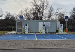 Bereits seit mehreren Monaten schmückt ein großes weißes Schild mit der Aufschrift „DIESE STATION WIRD DERZEIT ZU IHREM VORTEIL UMGEBAUT“ den Technikraum der drei abgeschalteten Schnellladestationen in der Ludwigsburger Straße 4. Arbeitende Techniker, Bauarbeiter oder bauliche Veränderungen sucht man vergeblich, und die Vereinsmitglieder der Liste Lebenswertes Tamm sowie zahlreiche Tammer Bürgerinnen und Bürger fragen sich dementsprechend seit Längerem – was ist hier eigentlich los? Zumal Neubau und Eröffnung des Ladeparks noch keine drei Jahre in der Vergangenheit liegen.
